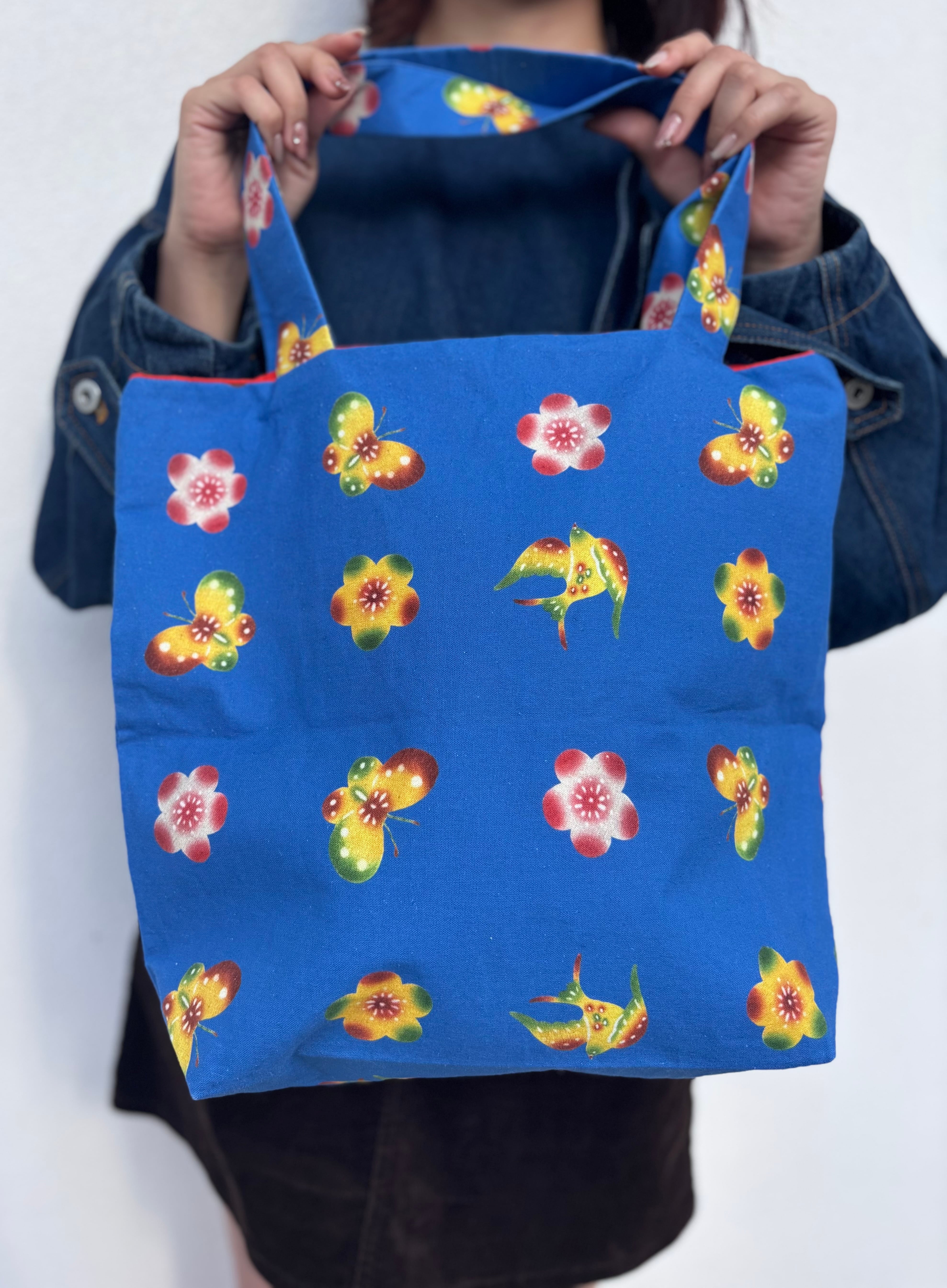 《紅型/鳥蝶梅柄プリント・トートバッグ》