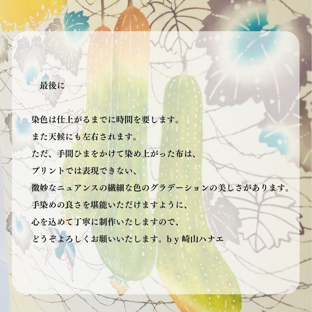 す。また手染めで制作しますので、見本の作品と若干色味が異なる可能性がありますが、個体差として楽しんでいただけると嬉しいです。