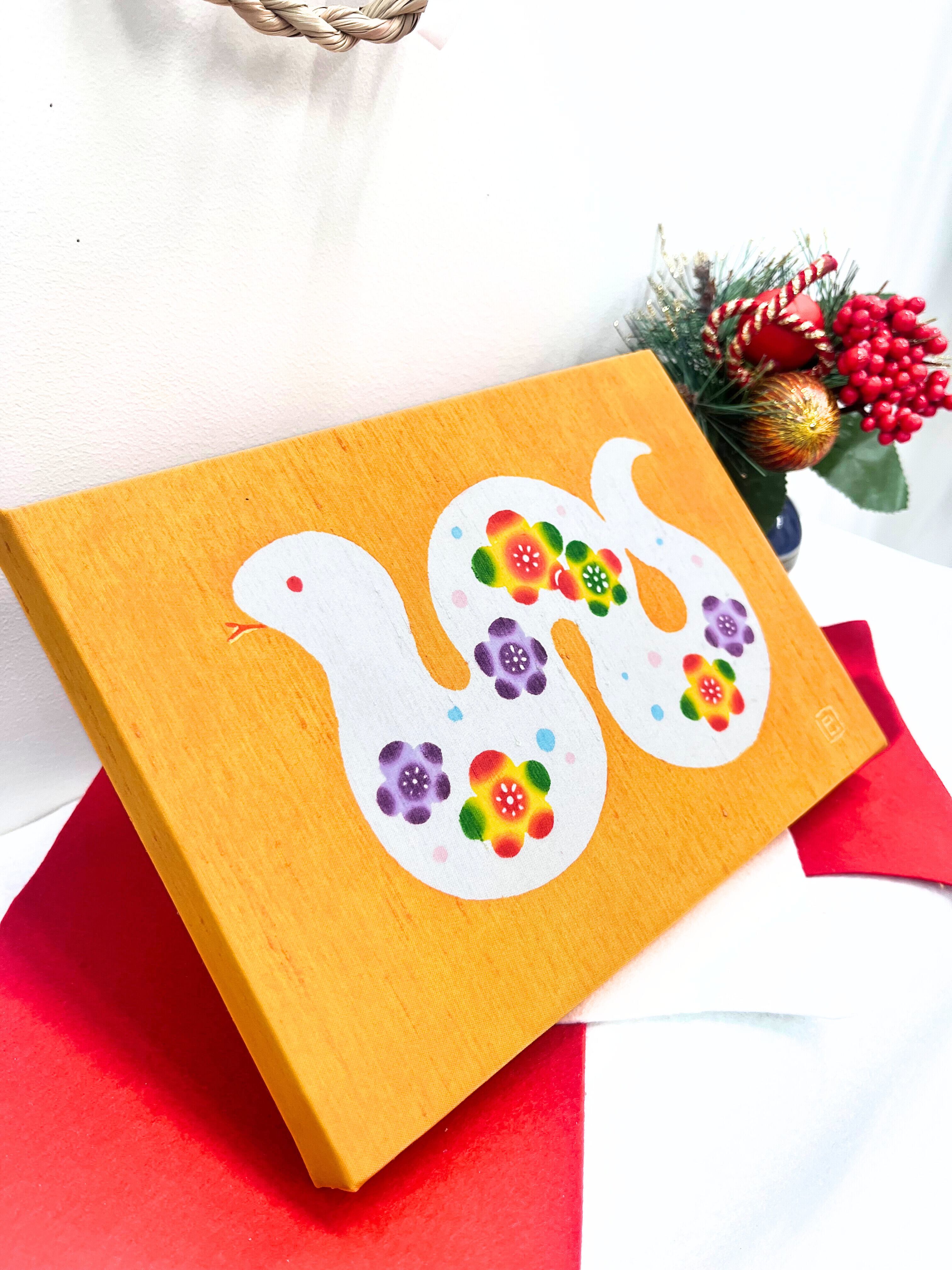 本染め紅型/干支パネル《巳》②黄金(くがに)色